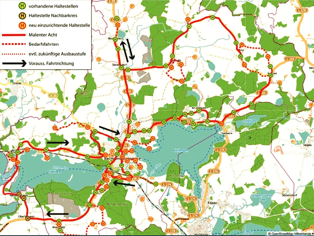 Mit der Streckenführung des Malenter Bürgerbusses wollen wir das bisherige Angebot des ÖPNV sinnvoll ergänzen. Unser oberstes Ziel ist es, den Einwohnerinnen und Einwohnern Malentes und den dazugehörigen Dorfschaften mit dem Bürgerbus ein attraktives Beförderungsangebot zu unterbreiten. Die "Malenter Acht" bietet sich dafür als ideale Fahrstrecke an.